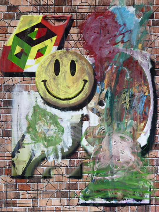 "Brick Wall with Smiley, Palette, and Other Stuff"